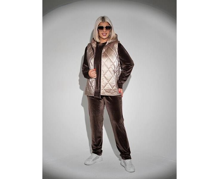 Костюм спортивный женский тёплый 1345 brown р.50-60 "Seven Zikina" недорого оптом от прямого поставщика