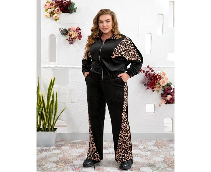 Костюм спортивный женский тёплый 936 black-beige р.48-62 "Seven Zikina" недорого оптом от прямого поставщика