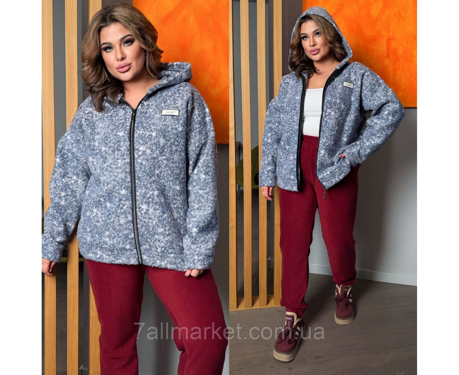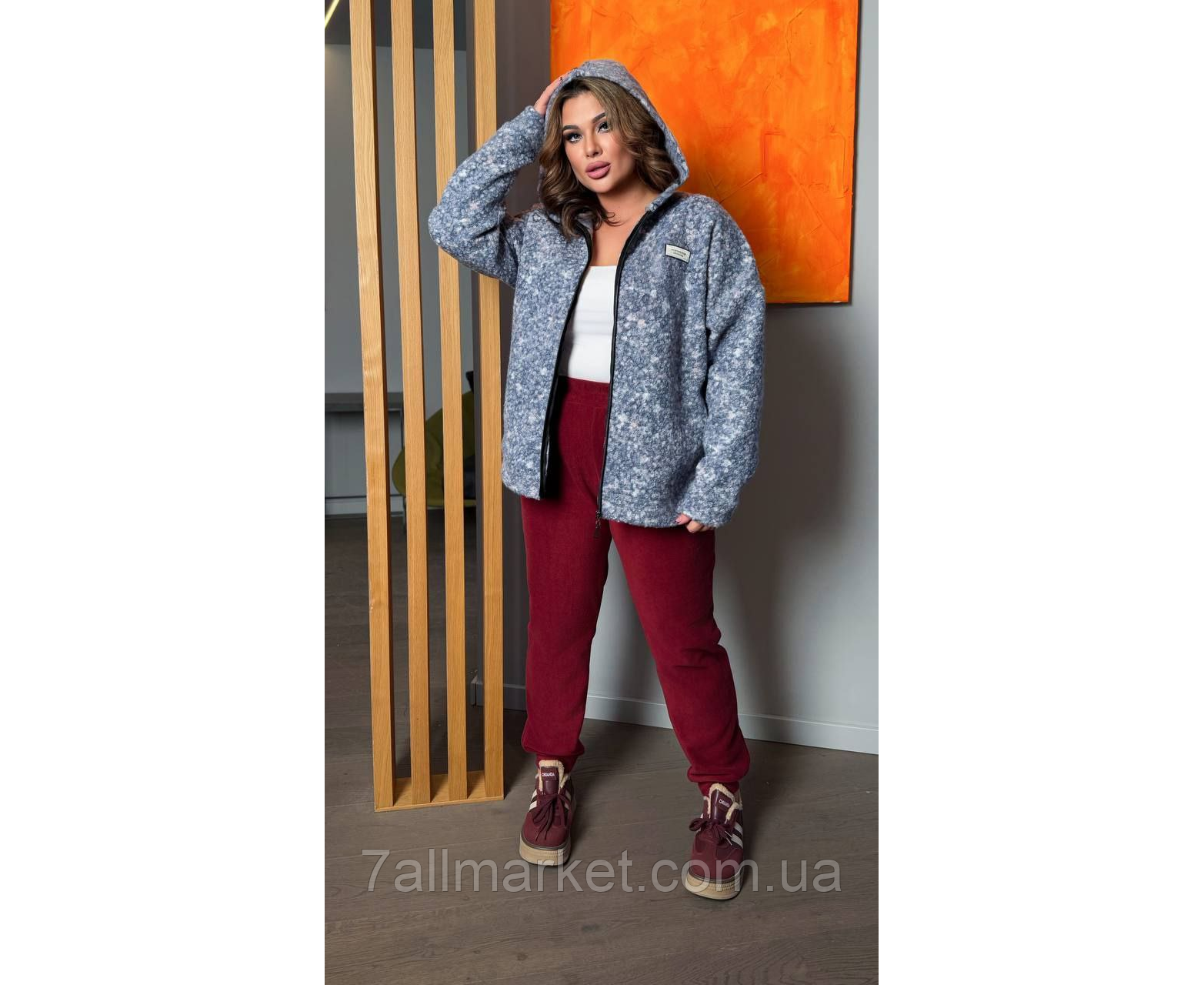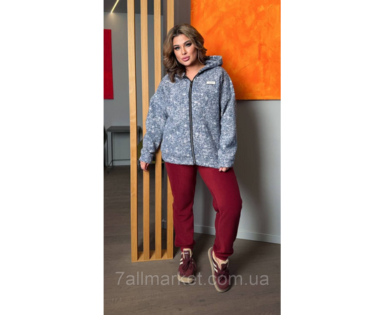 Костюм двойка Модель No 7895-1 КАЧЕСТВО ОТМЕНЕНИЯ Размер : 46-48; 50-52; 54-56; 58-60 Ткань : дабл флис полар + баранчик на флисе ( красиво тянется ) Довжина кофта : 75 см.. Длина рукава : 77 см. (от горловины ) Длина брюк : 110 см. Теплый костюм на холодную пору. Брюки с высокой посадкой, пояс на резинке. Кофта прямого покроя с капюшоном