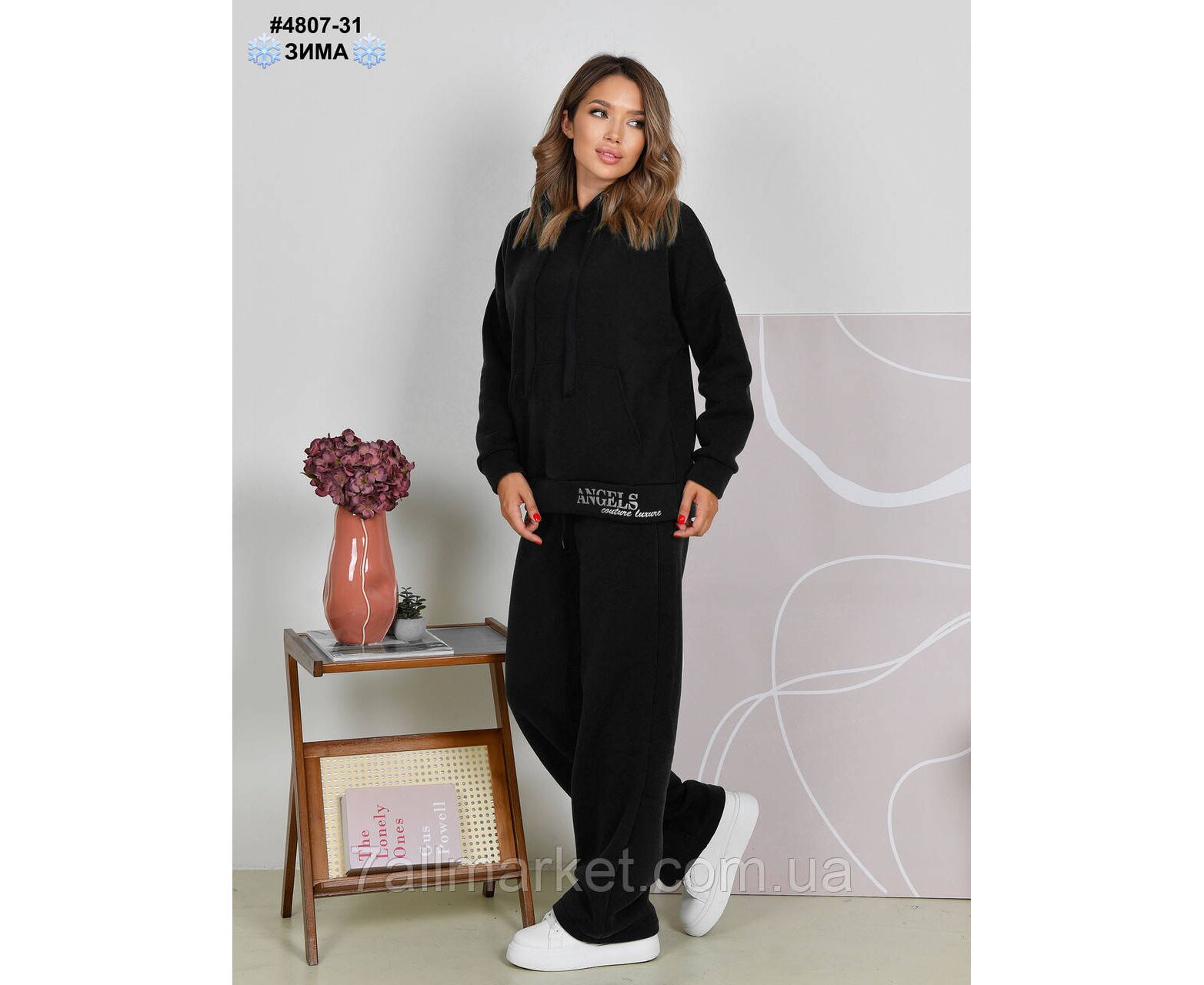 Жіночий костюм з тринитки на флісі. Верх — худі; низ — прямі штани, у поясі комфортною широкою резинка. Гарне лекало, стильна тепла модель.