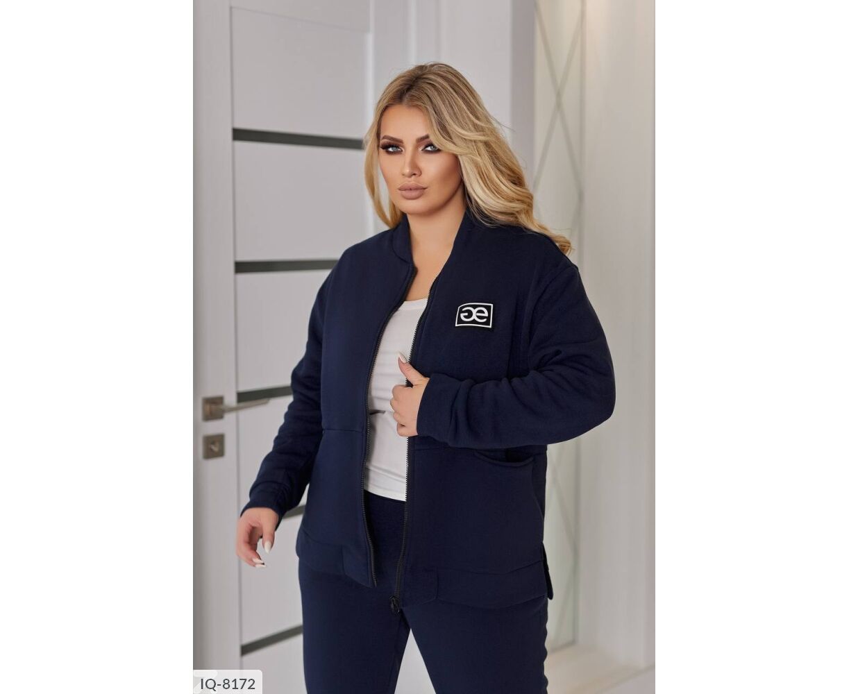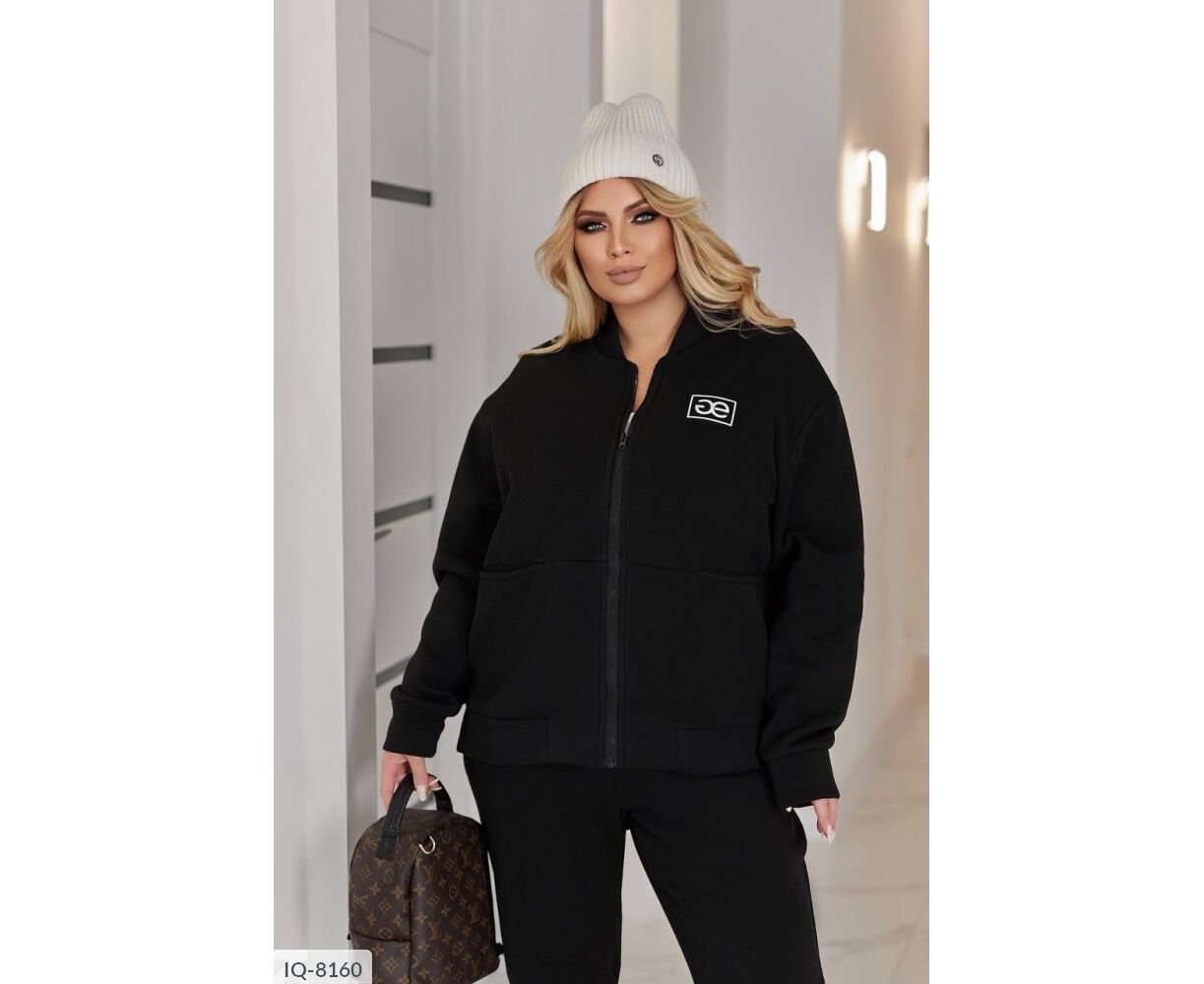 Бомбер -кофта свободного кроя, спереди молния застежка, тренд сезона - врезные карманы, а на груди - декорированная нашивка, по бокам с разрезами, брюки с карманами, снизу на манжетах.
