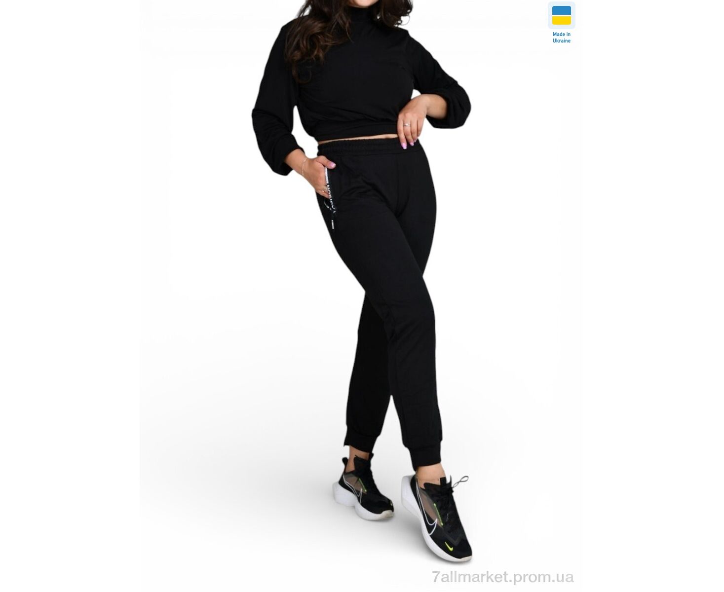 Спортивные брюки женские Весна/осень 1028 чорний (4 шт. р.сетка S-XL) "Sport style" недорого оптом от прямого поставщика