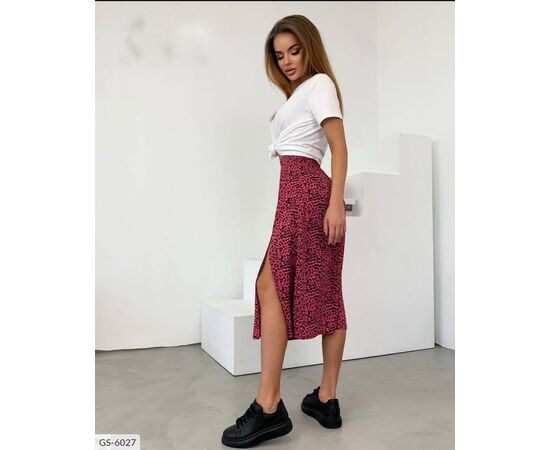 Юбка спереди на резинку, с боку разрез немного выше колена. На параметры от70, об95 подойдёт 44-й, на параметры от88, об112 подойдёт 52-й.