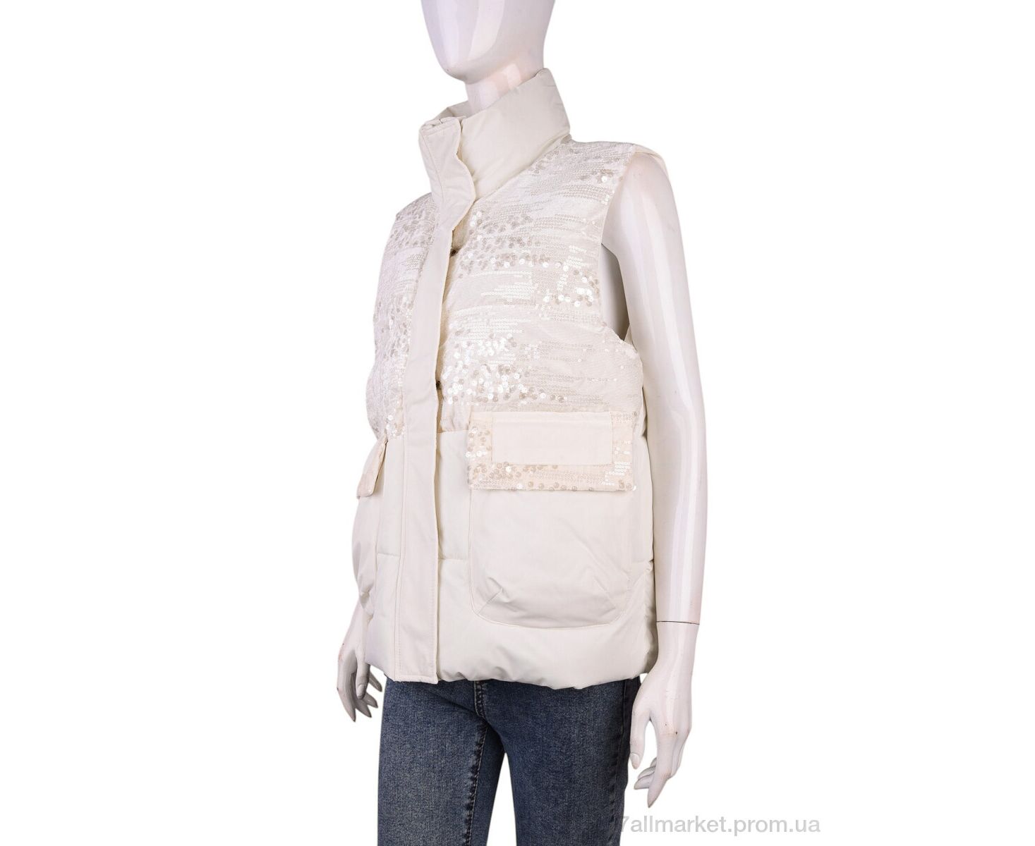 Жилетка женская Весна/осень M01 (11959) milky (4 шт. р.сетка M-2XL) "Obuvok" недорого оптом от прямого поставщика