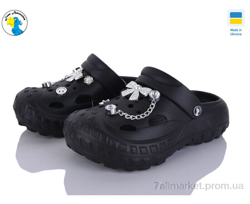 Кроксы женские летние Лето 124521 чорний (8 пар р.36-41) "Jose Amorales" недорого оптом от прямого поставщика
