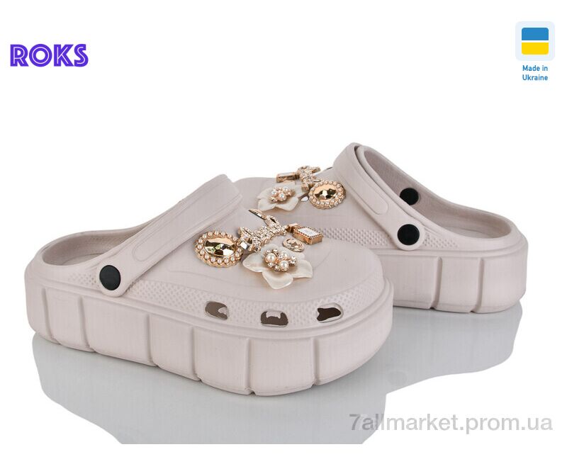 Кроксы женские летние Лето 152-2-8 бежевий (6 пар р.36-40) "Roks" недорого оптом от прямого поставщика