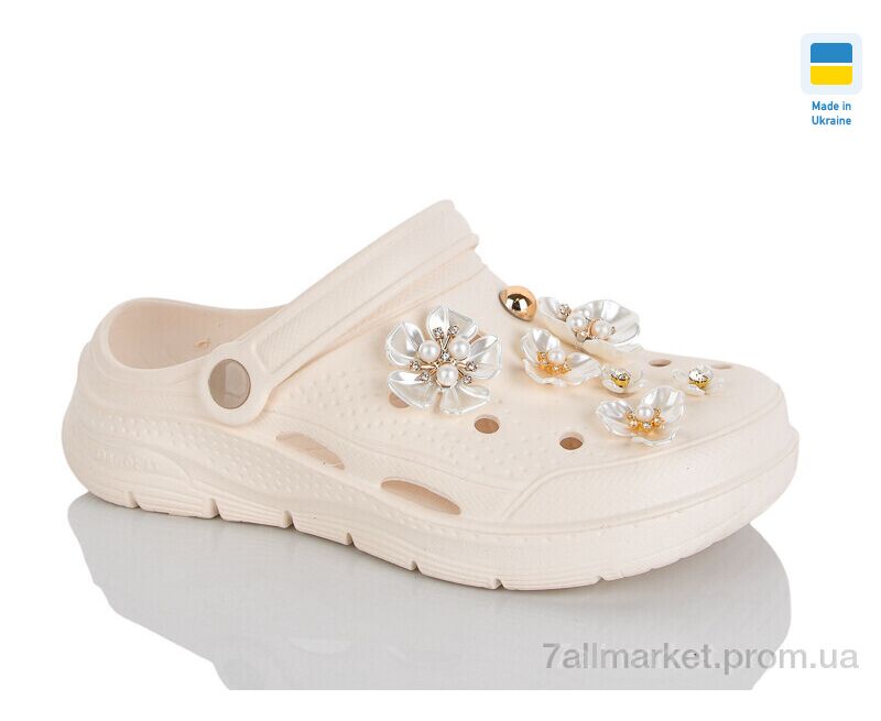 Кроксы женские летние Лето 413 бежевий (8 пар р.36-41) "Зручне взуття" недорого оптом от прямого поставщика