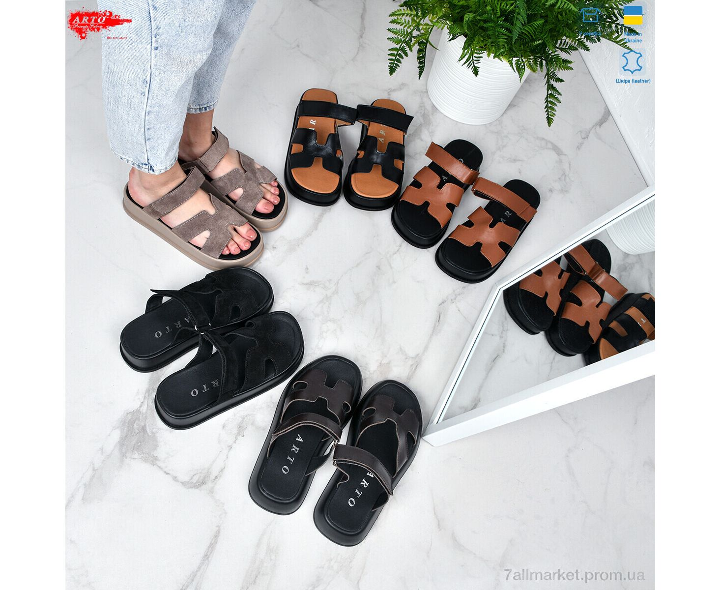 Шлепки женские облегченные Лето 197 кофе з. (8 пар р.36-41) "ARTO" недорого оптом от прямого поставщика