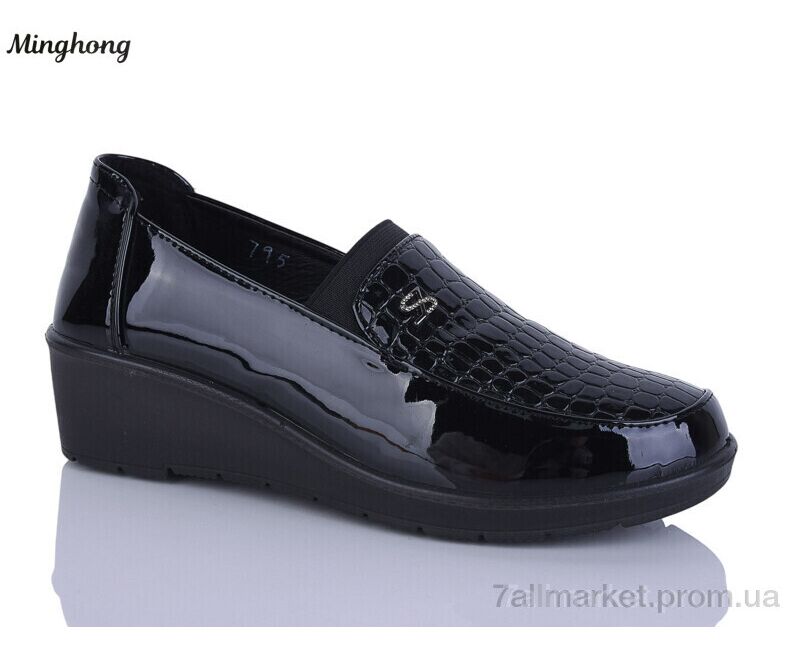 Туфли женские стильные Весна/осень 795 black (6 пар р.37-42) "Minghong" недорого оптом от прямого поставщика