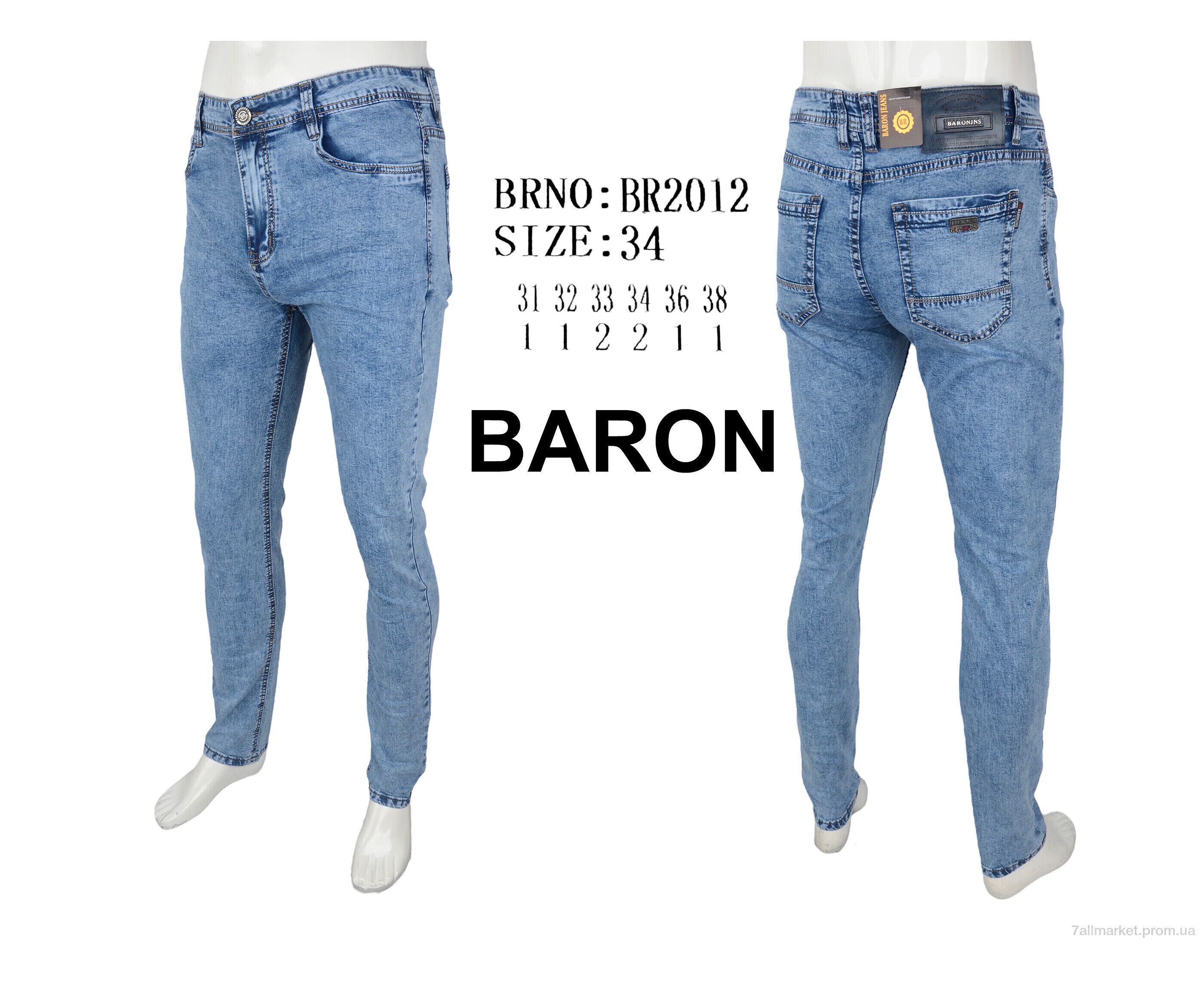 Джинси чоловічі Весна/осінь BR2012 (8 шт. р.сітка31-38) "Baron" недорого оптом від прямого постачальника