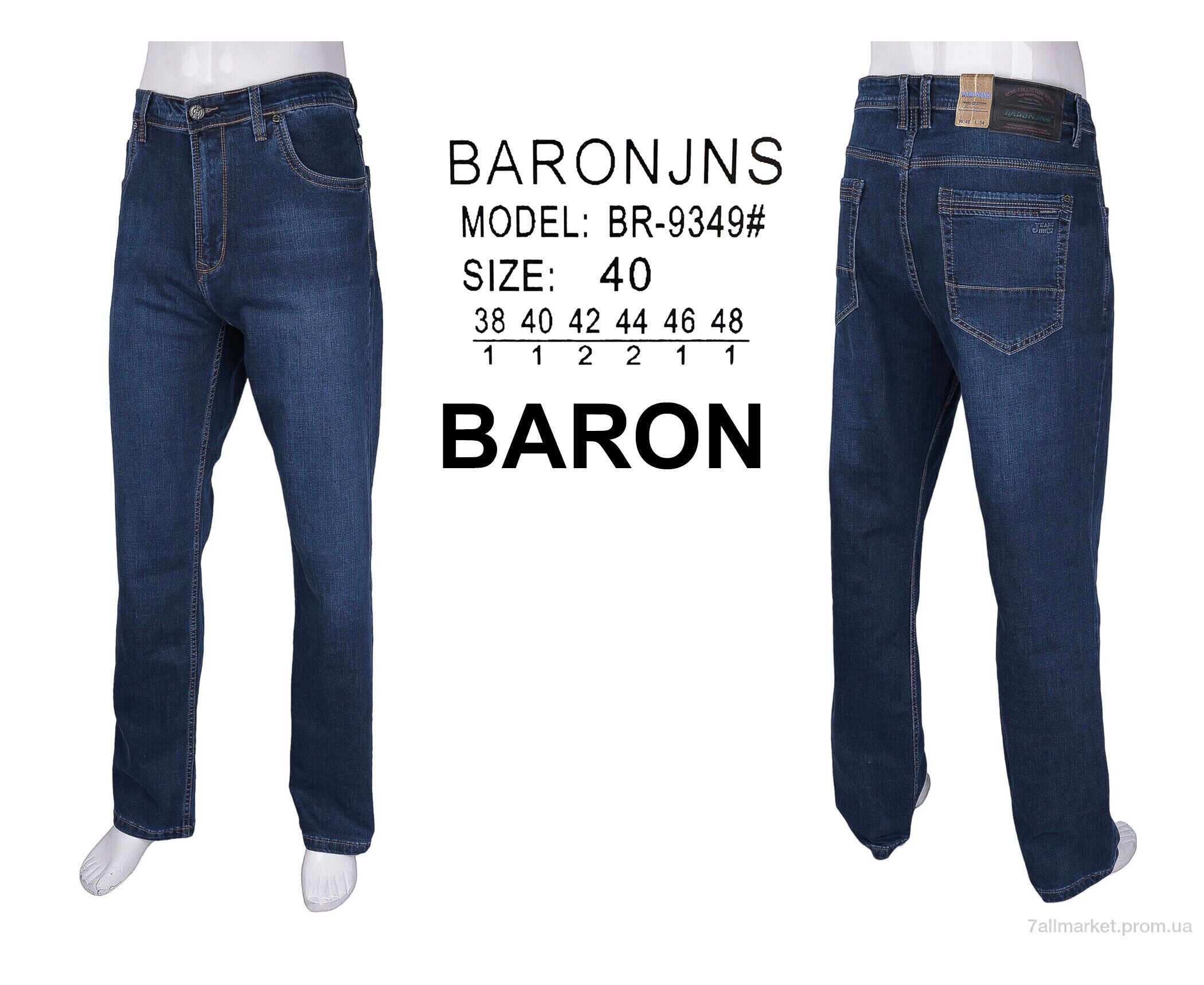 Джинси чоловічі Весна/осінь BR9349 (8 шт. р.сітка38-48) "Baron" недорого оптом від прямого постачальника