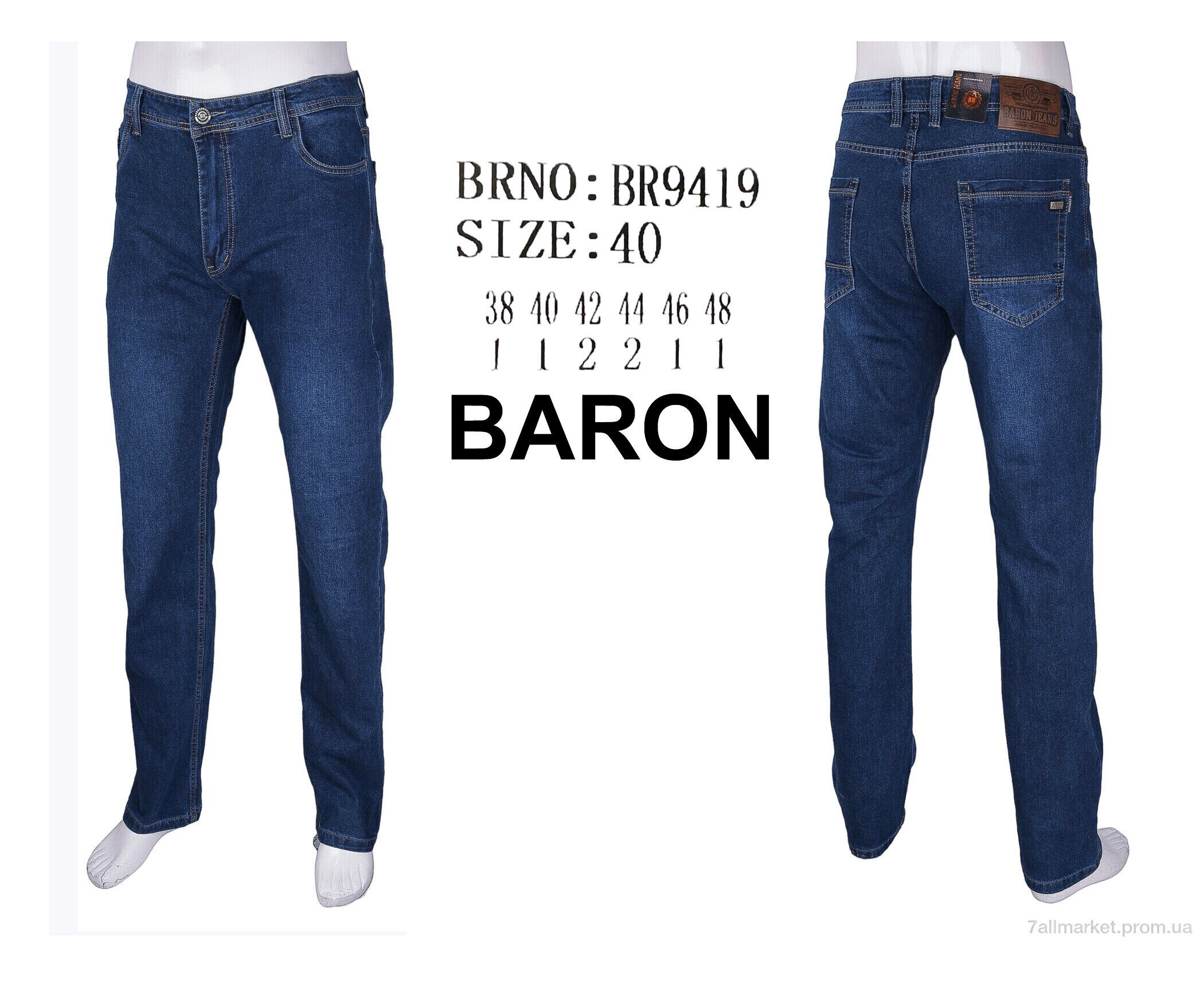 Джинси чоловічі Весна/осінь BR9419 (8 шт. р.сітка38-48) "Baron" недорого оптом від прямого постачальника