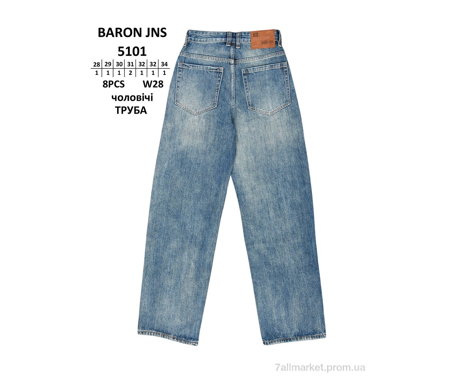 Джинси чоловічі Весна/осінь 5101 ТРУБА (8 шт. р.сітка28-34) "Baron" недорого оптом від прямого постачальника