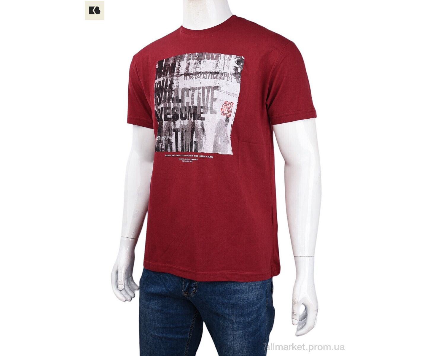 Футболка чоловіча Літо 3707-109-3 bordo (4 шт. р.сіткаM-2XL) "BIG" недорого оптом від прямого постачальника