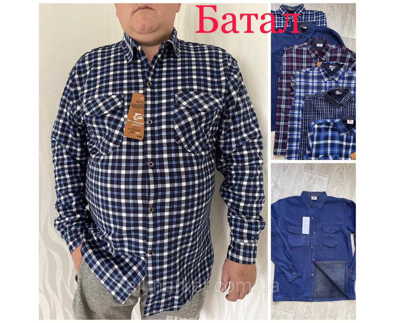 Сорочка чоловіча на флісі/батал розмір 56-64 (мікс кв) "NICOLAS" недорого від прямого постачальника