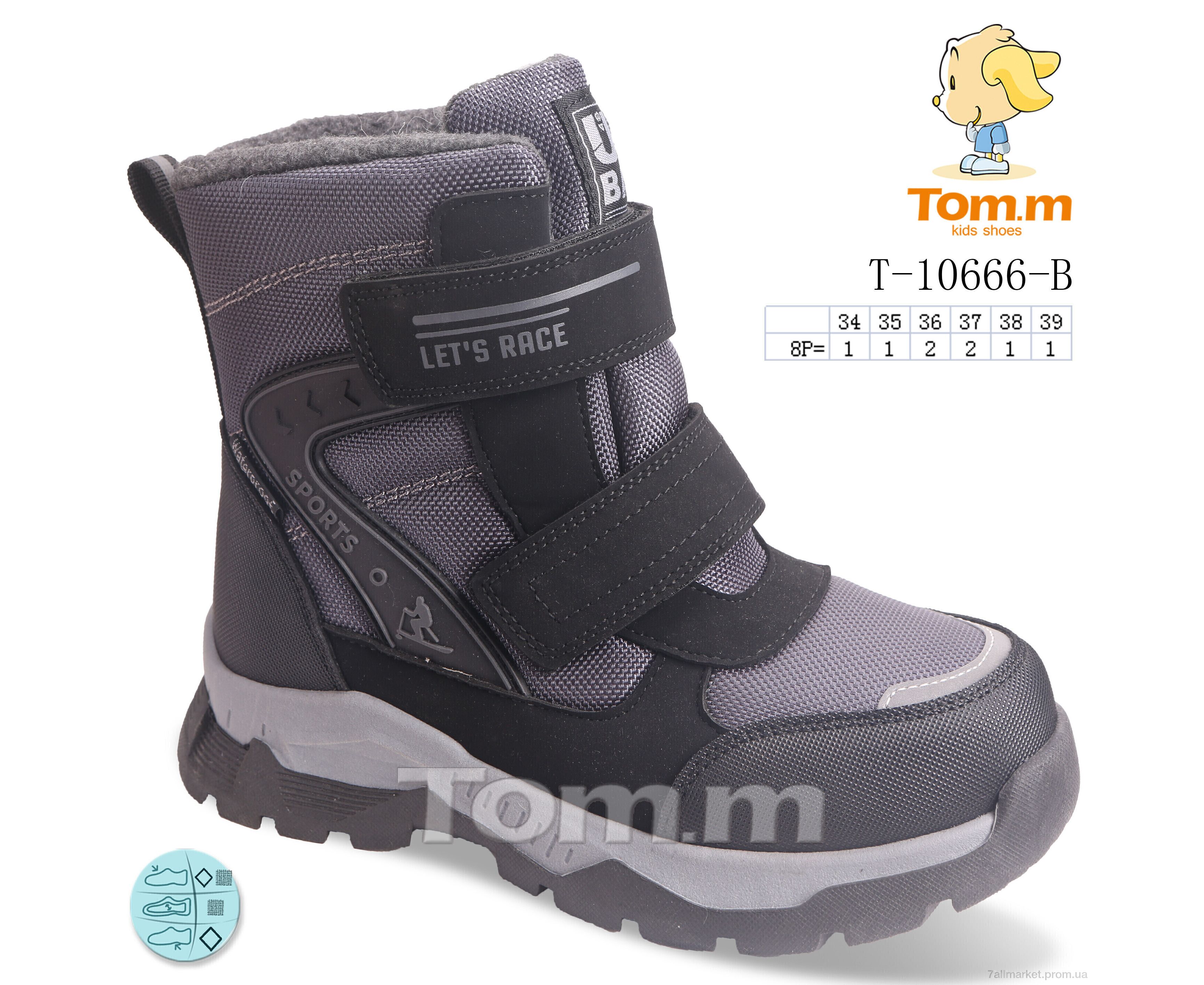 Черевики дитячі зручні Зима T-10666-B (8 пар р.34-39) "Ok Shoes" недорого оптом від прямого постачальника