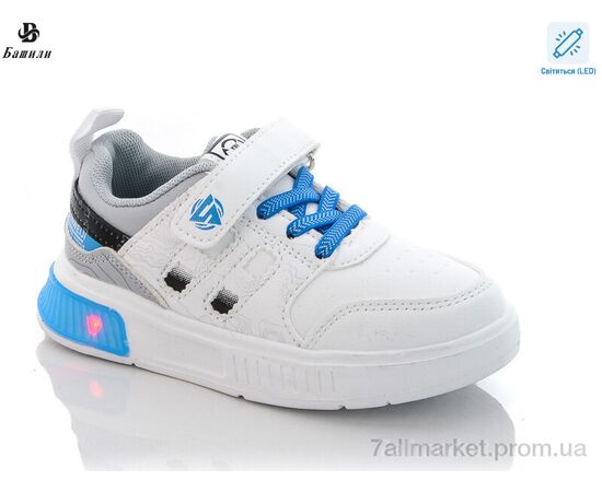 Кросівки дитячі модні Весна/осінь D802-1K LED white-blue (8 пар р.26-31) "Башили" недорого оптом від прямого постачальника