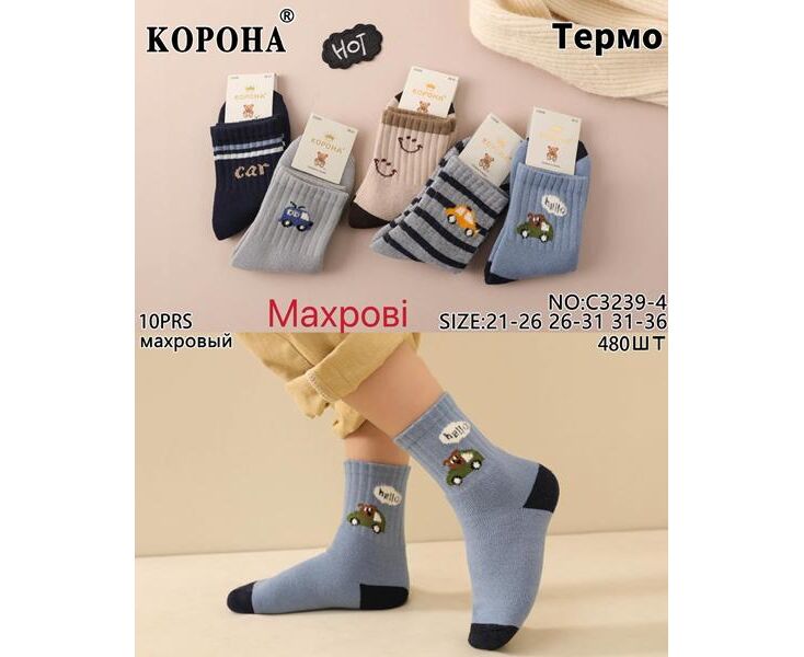 Шкарпетки дитячі теплі на хлопчика C3239-4 mix р.31-36 "Корона" недорого оптом від прямого постачальника