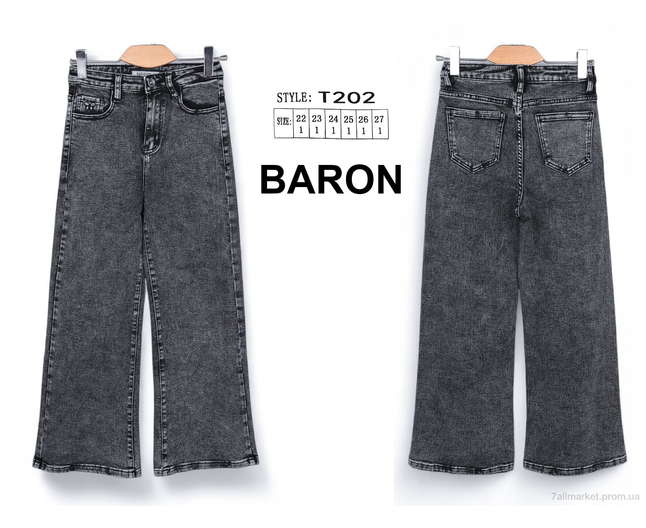 Джинси дитячі Весна/осінь T202 (6 шт. р.сітка22-27) "Baron" недорого оптом від прямого постачальника
