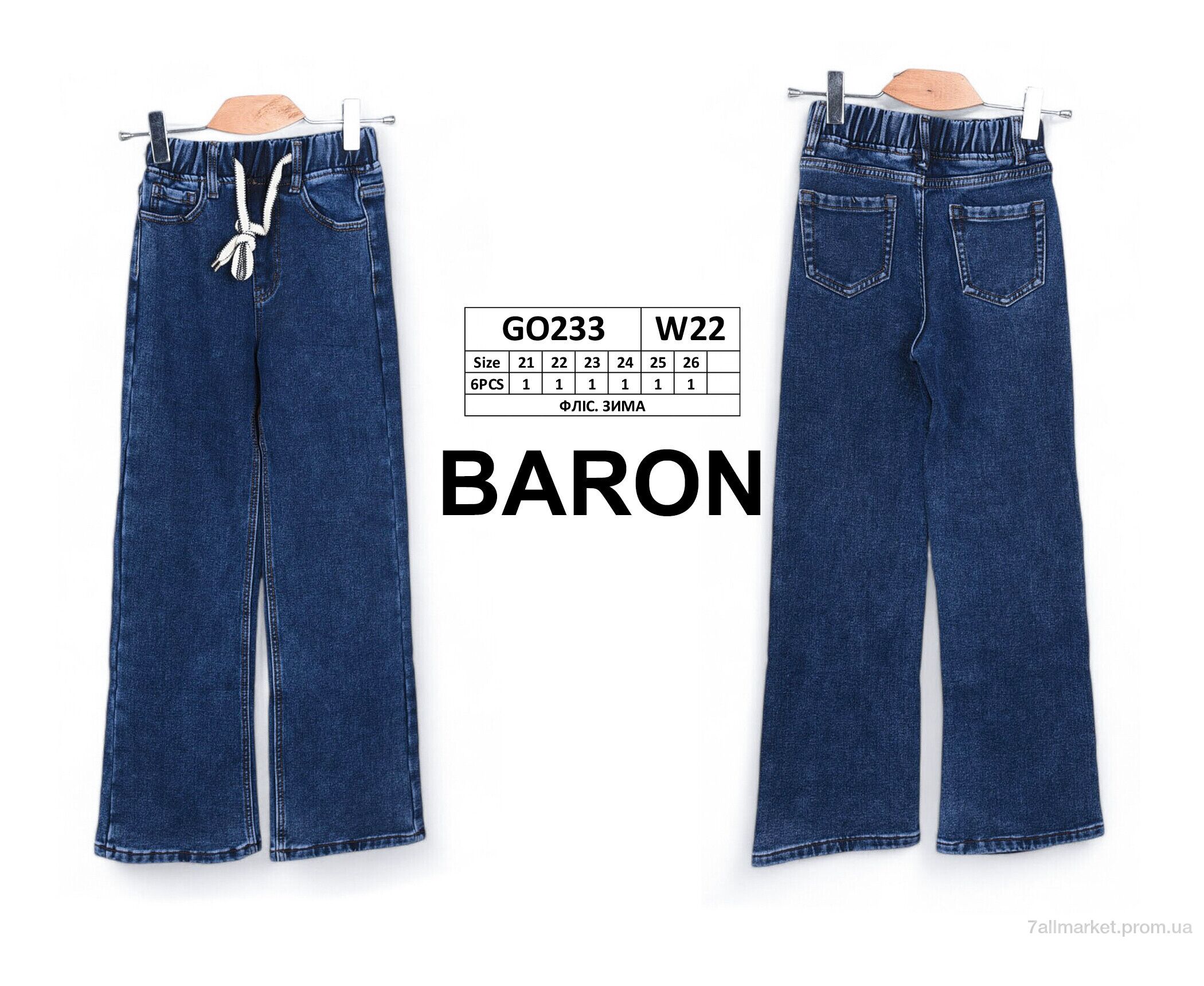 Джинси дитячі Зима GO233 фліс (6 шт. р.сітка21-26) "Baron" недорого оптом від прямого постачальника