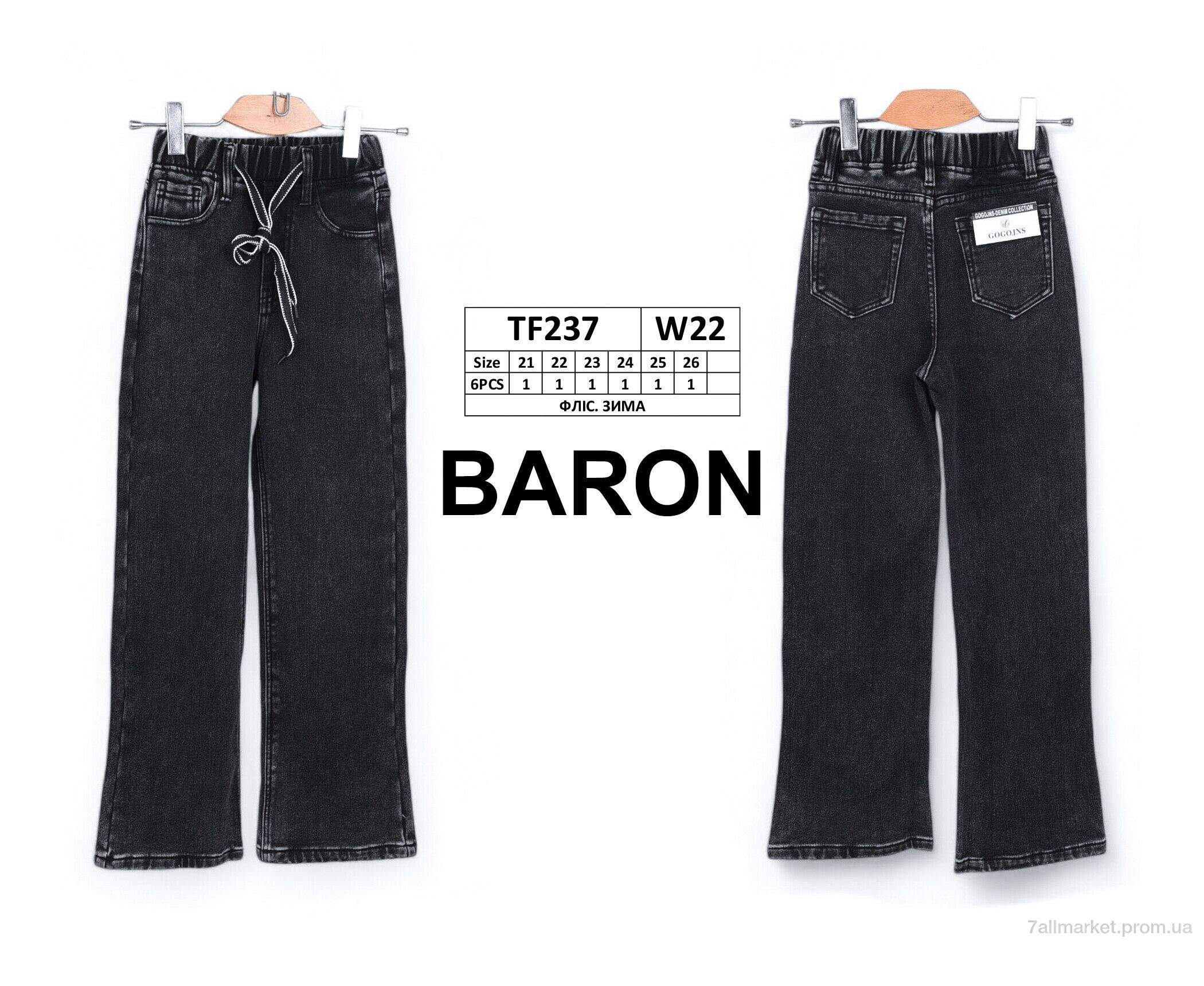 Джинси дитячі Зима TF237 фліс (6 шт. р.сітка21-26) "Baron" недорого оптом від прямого постачальника