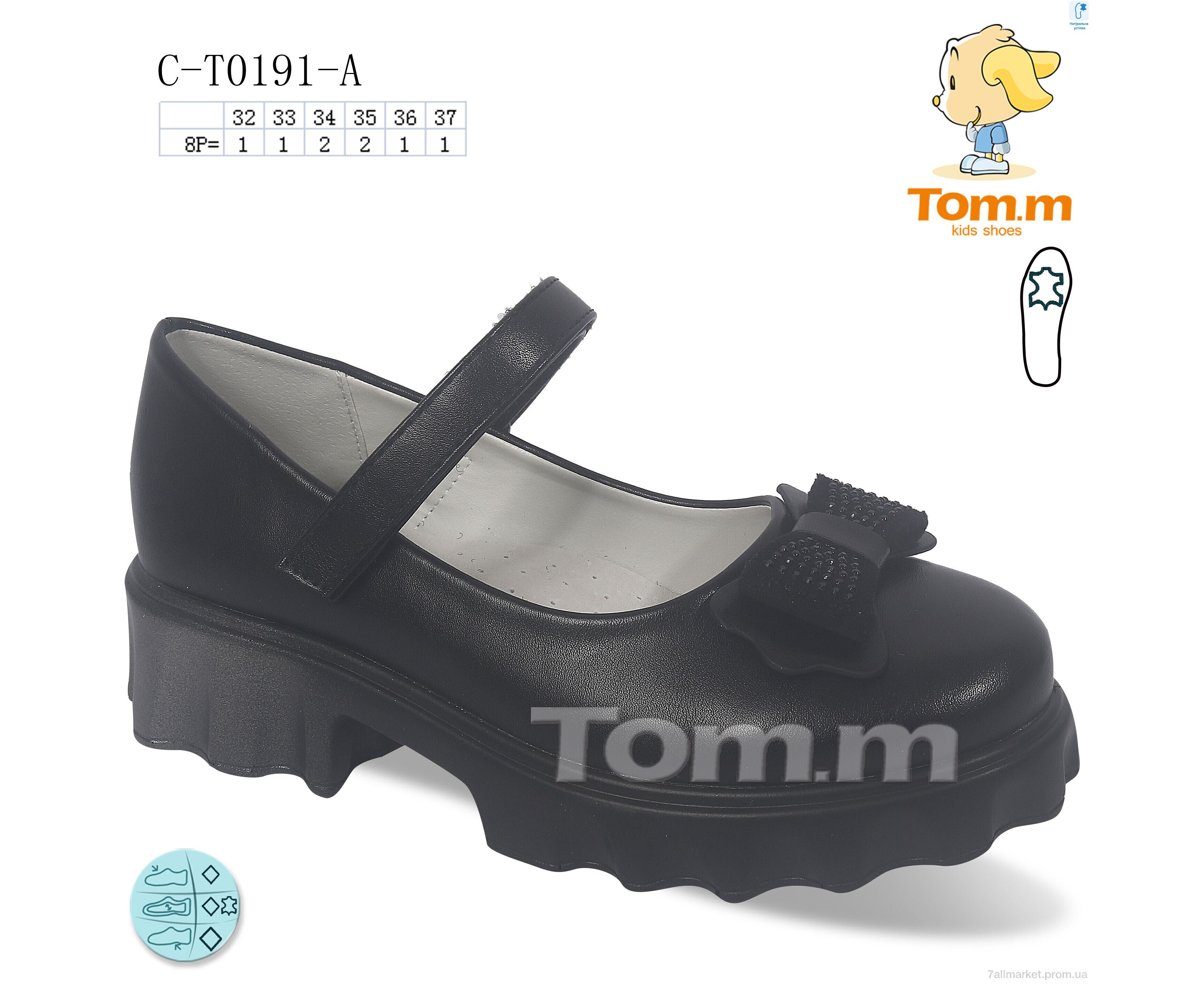 Туфлі дитячі зручні Весна/осінь C-T0191-A (8 пар р.32-37) "TOM.M" недорого оптом від прямого постачальника