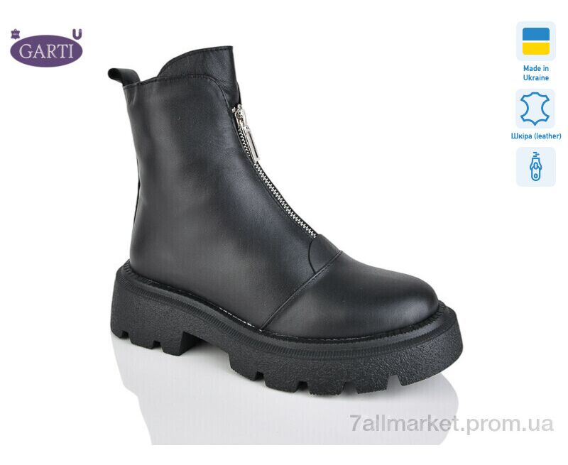 Черевики жіночі стильні Весна/осінь 307 чорна шкіра байка (6 пар р.36-40) "Garti" недорого оптом від прямого постачальника