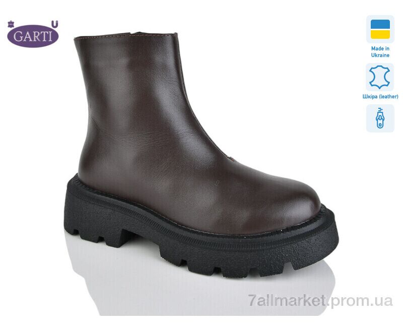 Черевики жіночі стильні Весна/осінь 6725 корич шкіра байка (6 пар р.36-40) "Garti" недорого оптом від прямого постачальника