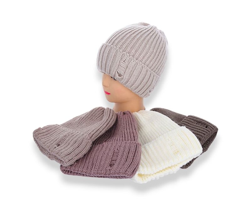 Шапка зимова жіноча KWR001-3 рвана на флісі mix р.56-60 "Angelica" недорого оптом від прямого постачальника