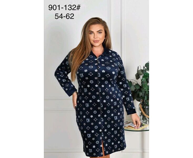 Халат жіночий 901-132 navy р.54-62 "HOME STYLE" недорого оптом від прямого постачальника