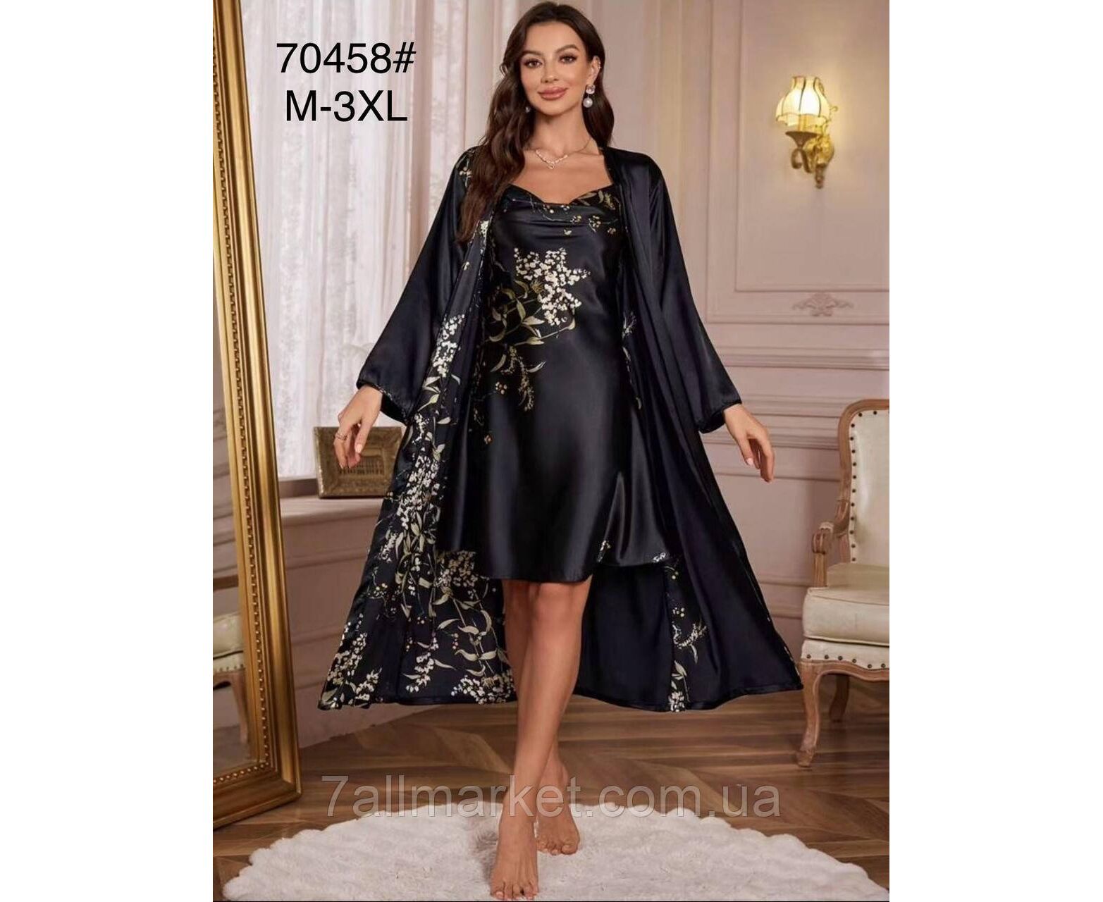 Комплект жіночий 2-ка халат + ніжна сорочка р-ри M-3XL(3цв) "FLOWER" купити недорого від прямого постачальника