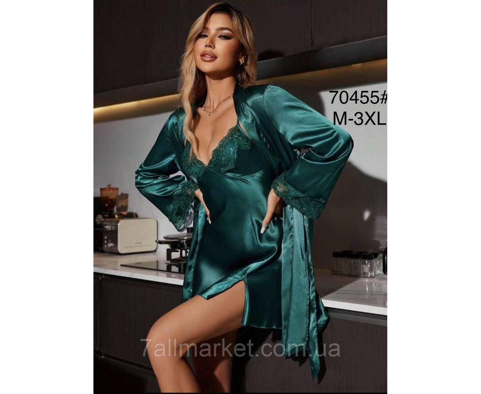 Комплект жіночий 2-ка халат + ніжна сорочка р-ри M-3XL(3цв) "FLOWER" купити недорого від прямого постачальника