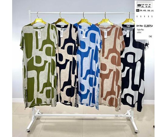 Сукня літня жіноча CL2075 beige-black р.2XL-6XL "BASE" недорого оптом від прямого постачальника