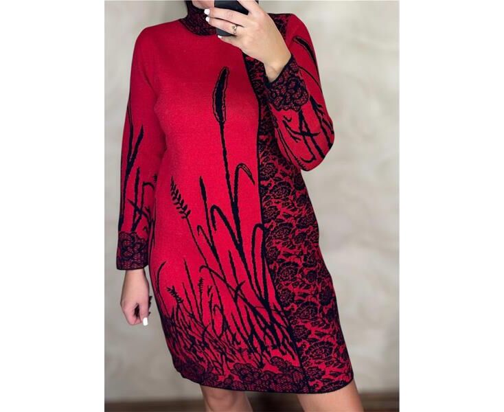 Сукня тепла жіноча 26286 red р.46-50 "PULSE" недорого оптом від прямого постачальника