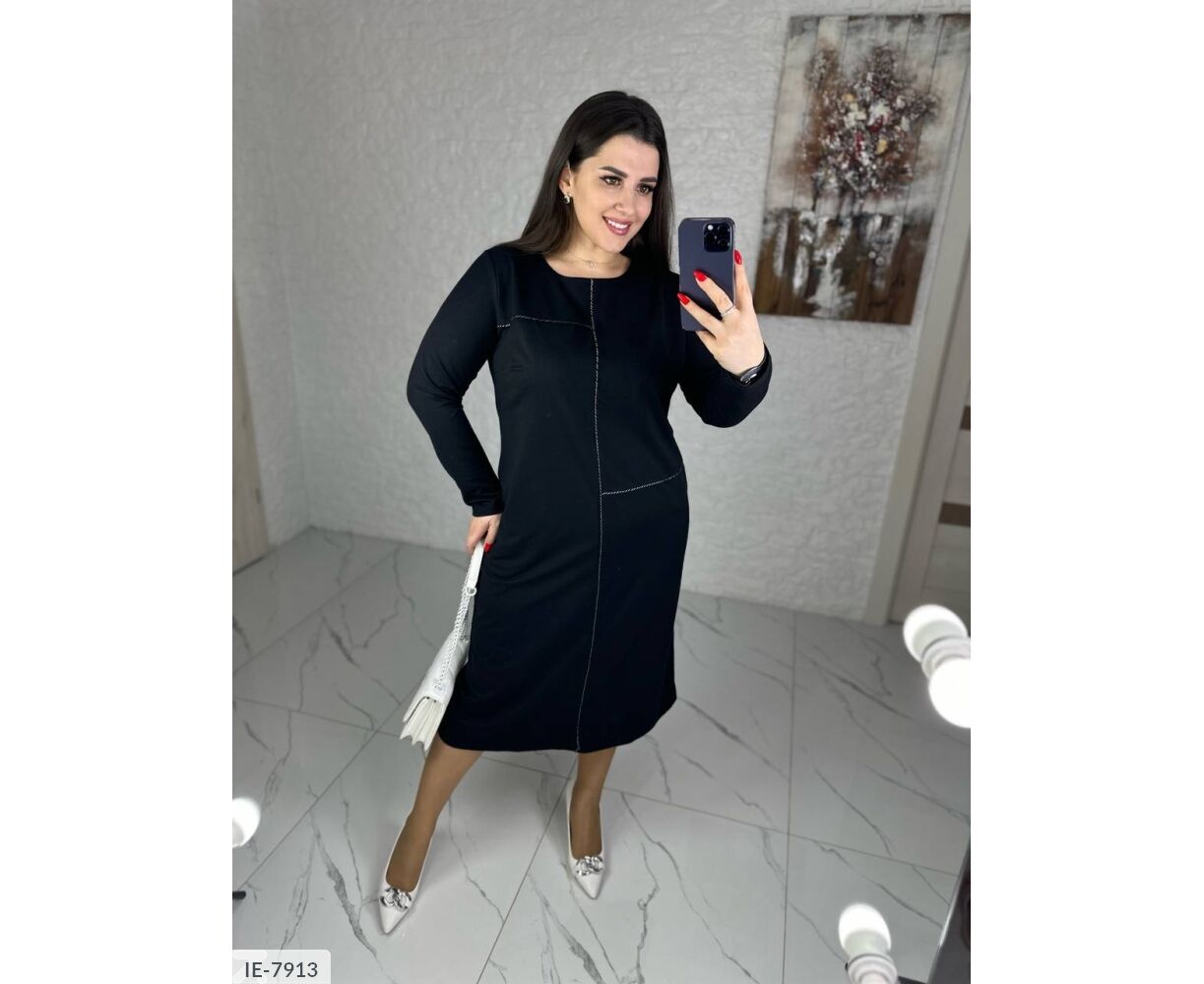 Класичне, базове, подовжене плаття, прикрашене кантом, який підкреслює фігуру, довгий рукав, з боків кишені.
