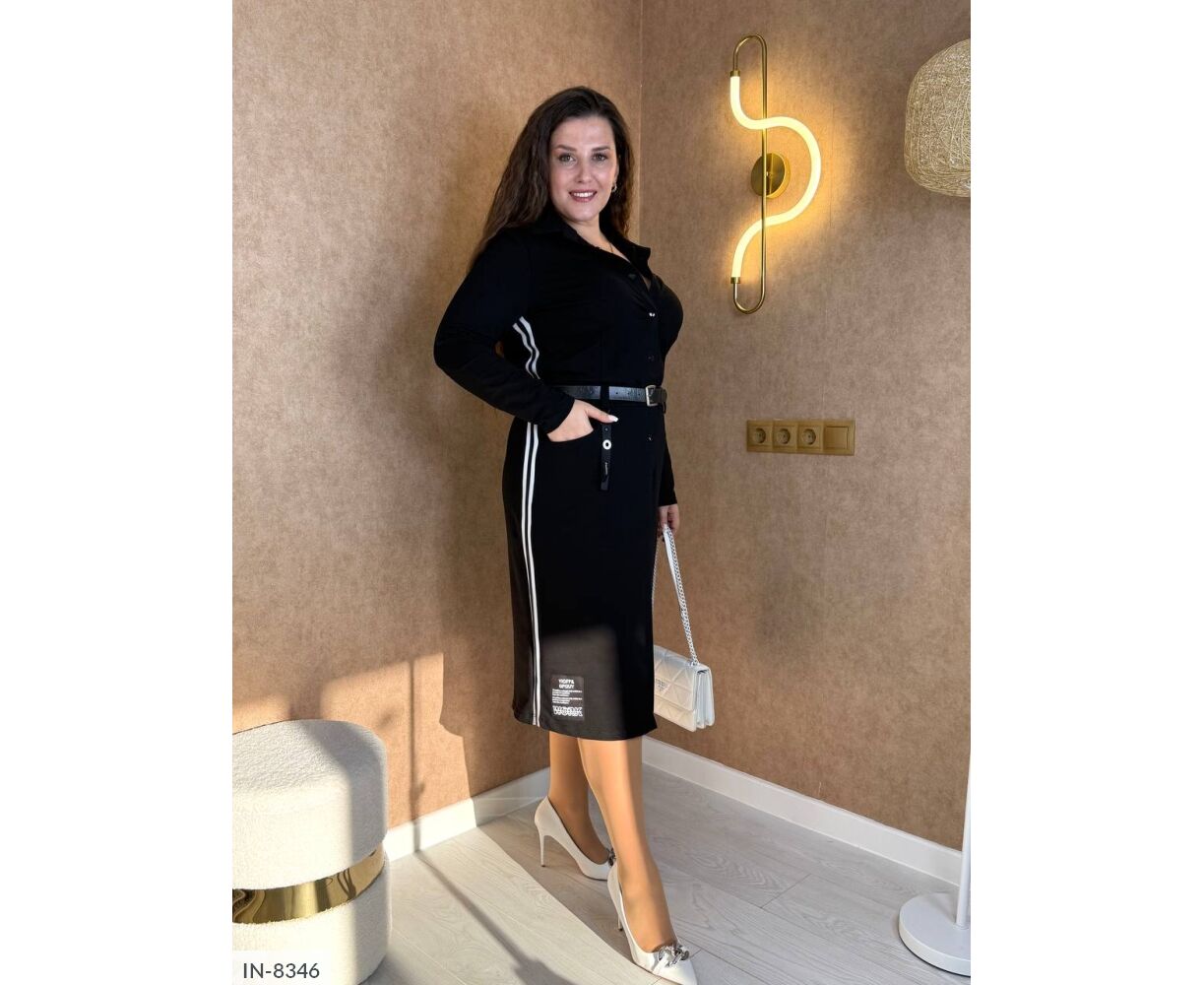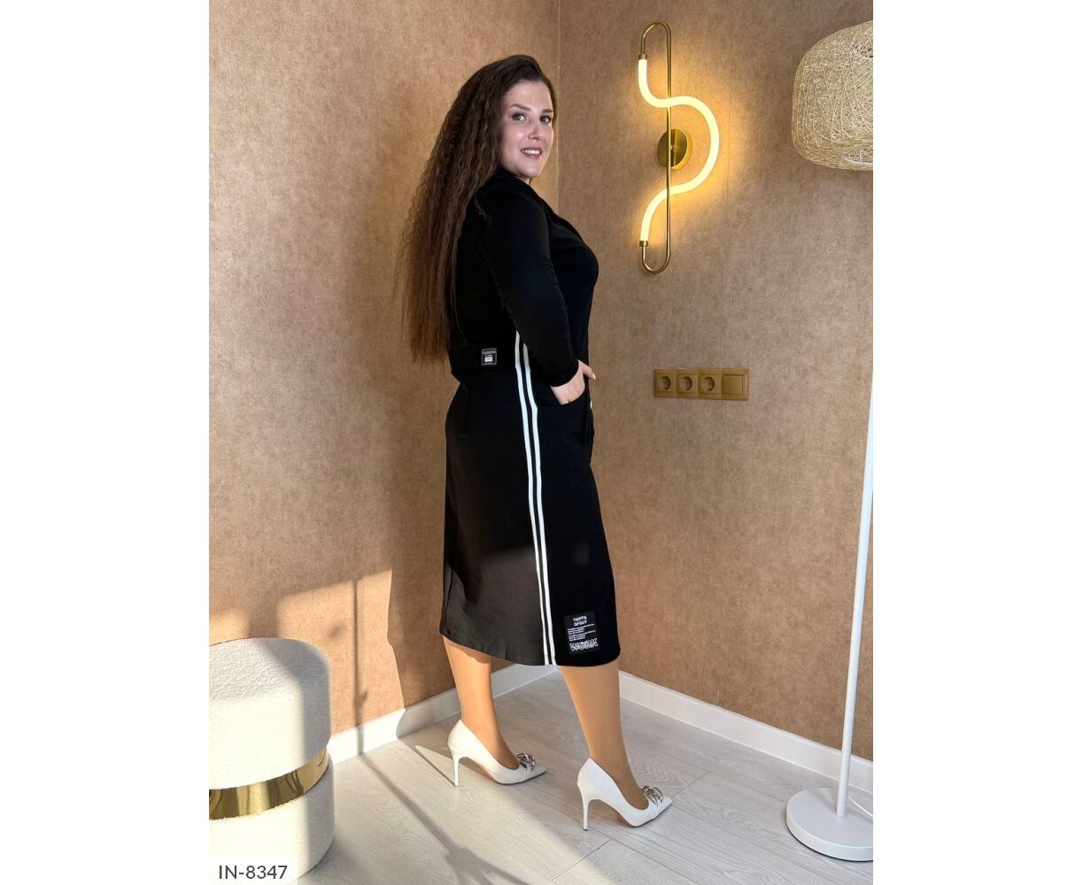 Плаття спортшик, з боків кишені, приталена модель прикрашена пришивними нашивками, на талії петлі для поясу ( пояс не в комплекті), застібається на кнопки, карабін на поясі, з боків лампами, спереду розріз.