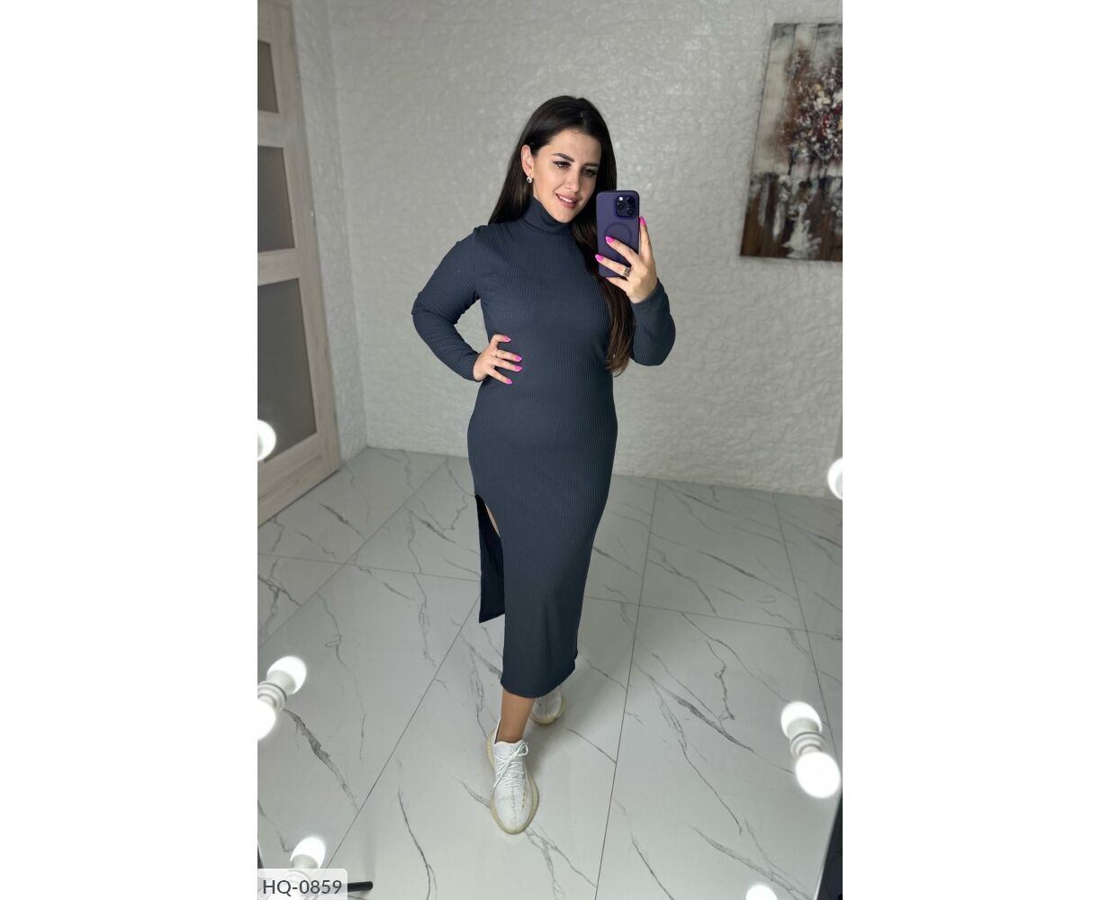 Приталені плаття з вирізом з одного боку, висока горловина, довгий рукав