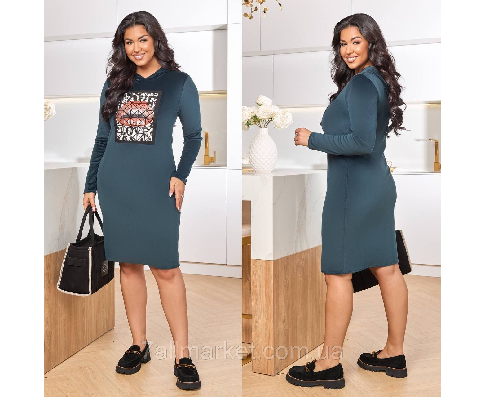 Плаття жіноче велюрове з капюшоном р-ри 46-60 "LADA" купити недорого від прямого постачальника