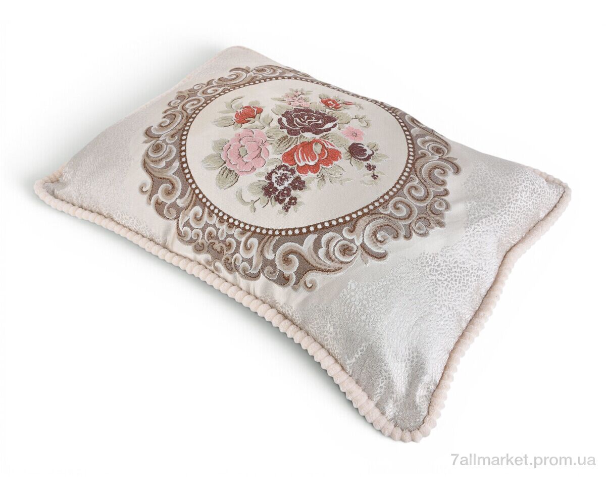 Подушка Гобелен коло 3 квітки (99035) бежевий 50x70см (2 шт. р.сіткаOne size) "Obuvok" недорого оптом від прямого постачальника