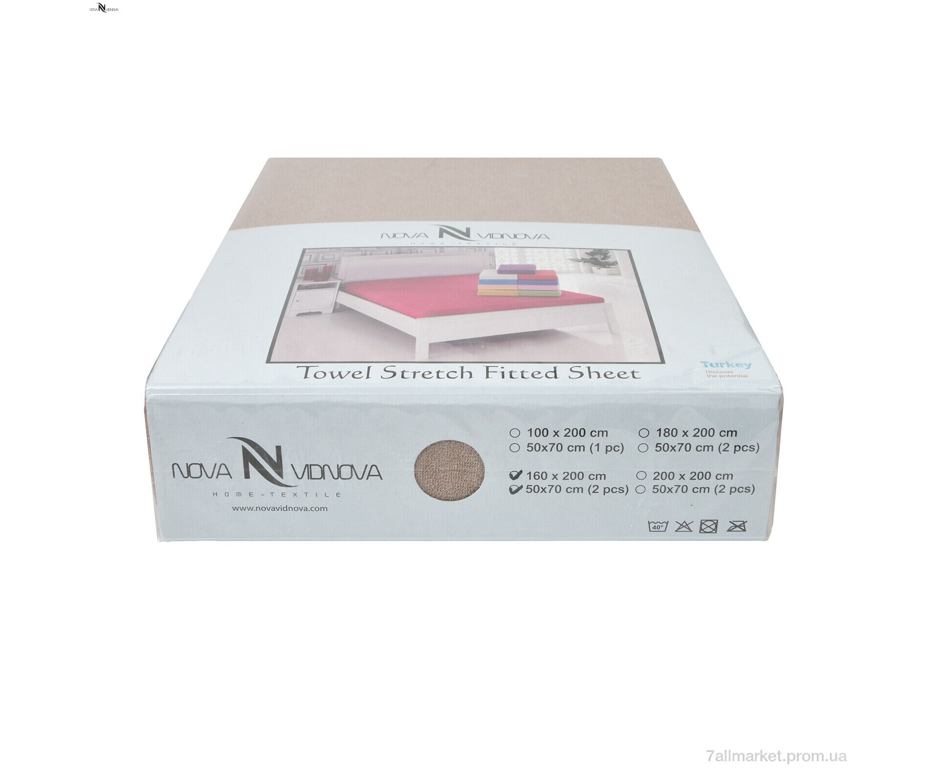 Постільна білизна 01-3 Простирало МАХРОВЕ (160x200)+дві наволочки(50x70) бежевий (5 шт. р.сіткаOne size) "NOVA VIDNOVA" недорого оптом від прямого постачальника