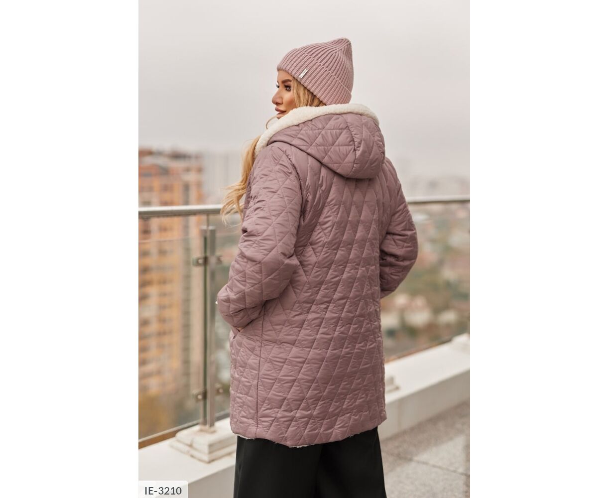 Стильна комфортна куртка з капюшоном, спереду застібається на косу змійку блискавку, з кишенями, на одному з них - нашивка. Штучне хутро є на передній і задній полиці, капюшон повністю на хутрі, рукав без хутра, на підкладці, манжети на резинці.