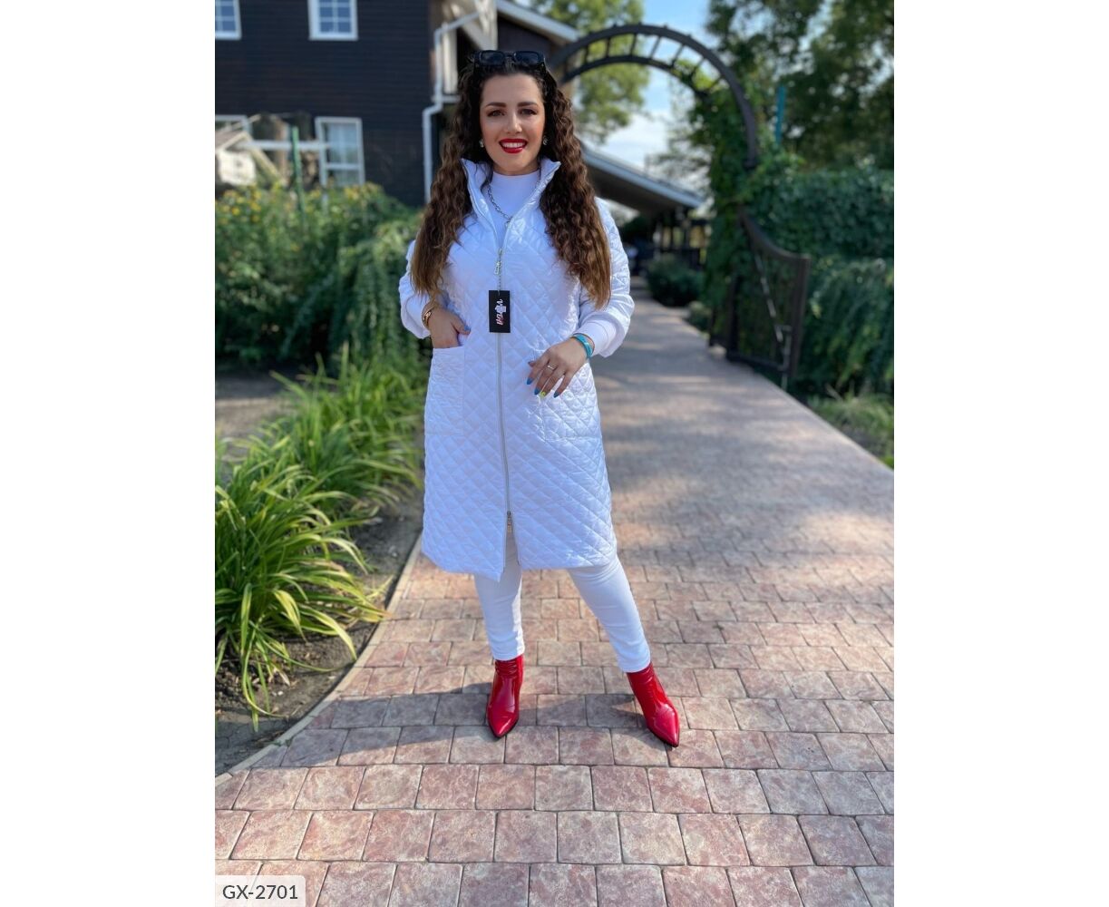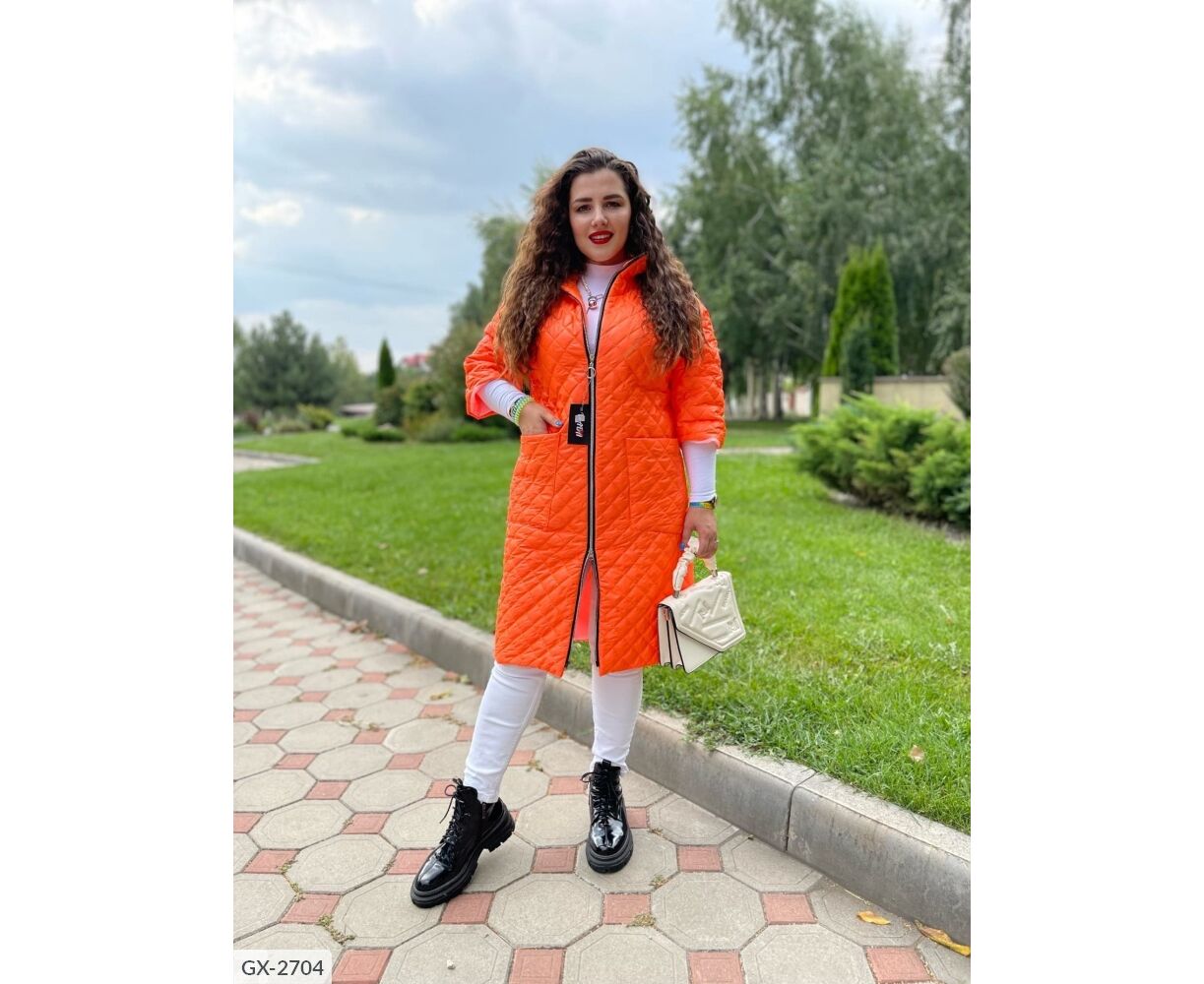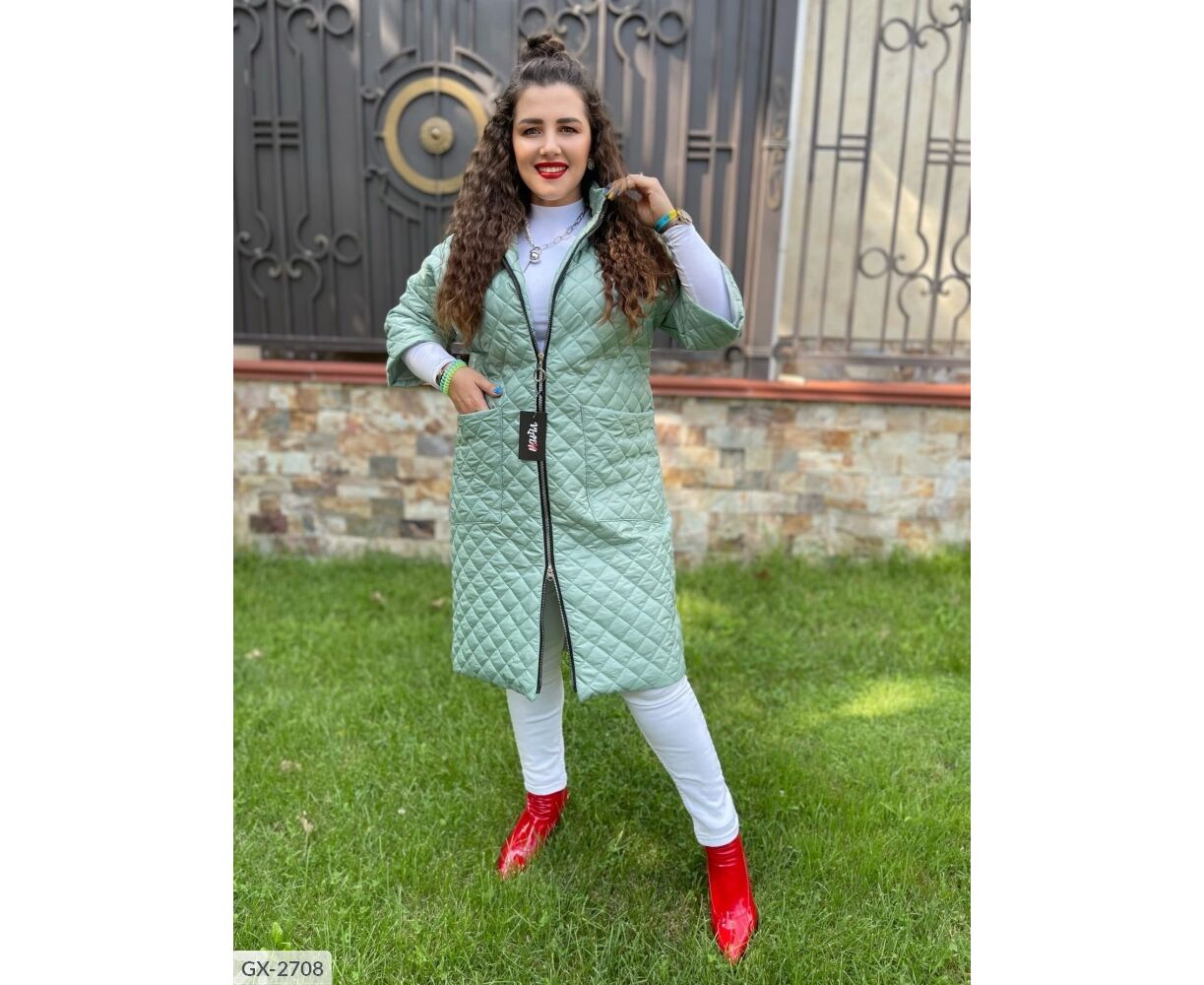 Подовжене пальто на синтепоні, рукав нижче ліктя (довжина 3/4), застібається на застібку з двома бігунками, з боків глибокі кишені, комір-стійка