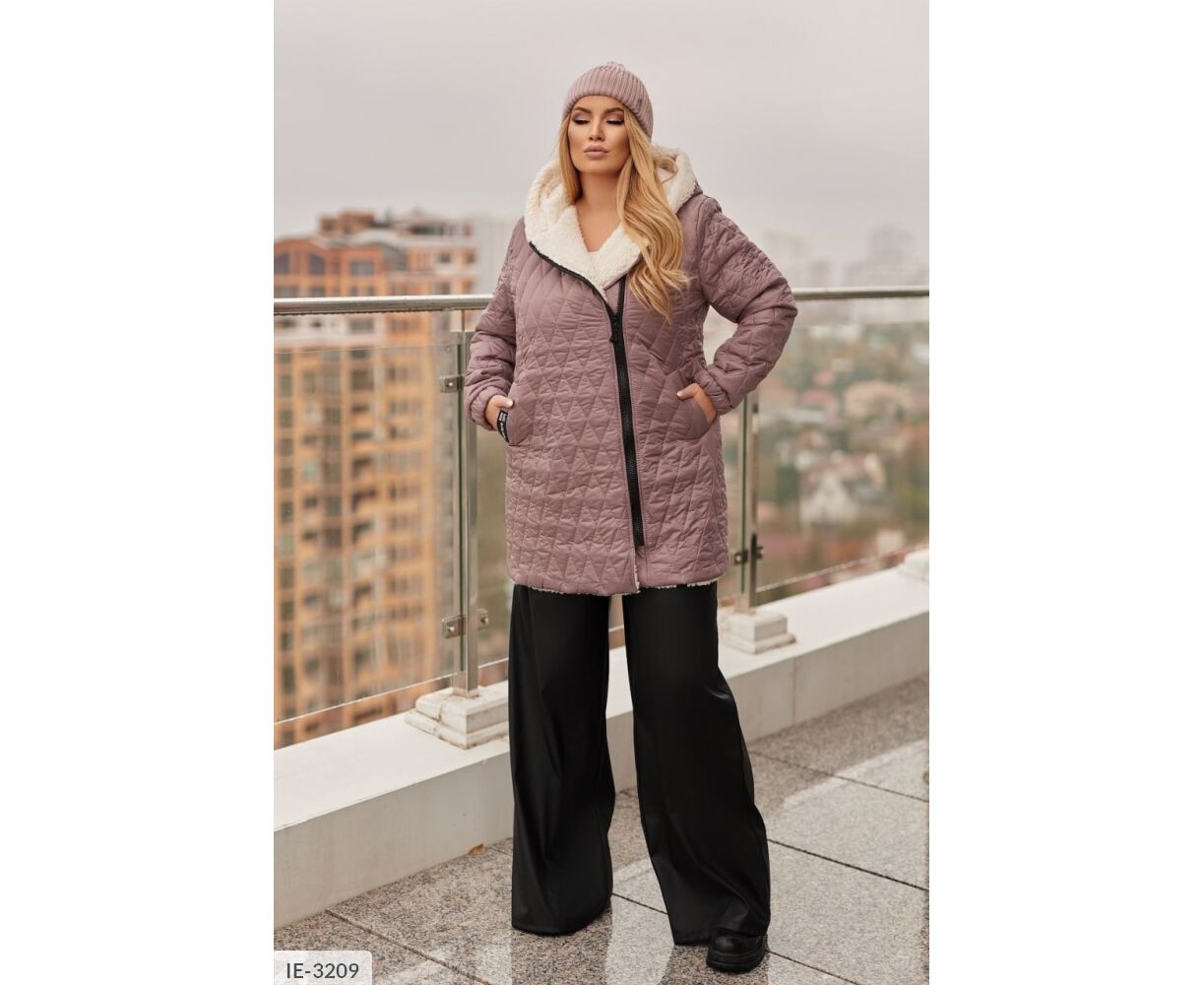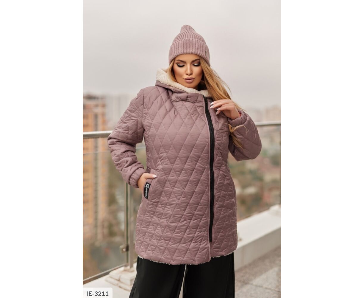 Стильна комфортна куртка з капюшоном, спереду застібається на косу змійку блискавку, з кишенями, на одному з них - нашивка. Штучне хутро є на передній і задній полиці, капюшон повністю на хутрі, рукав без хутра, на підкладці, манжети на резинці.