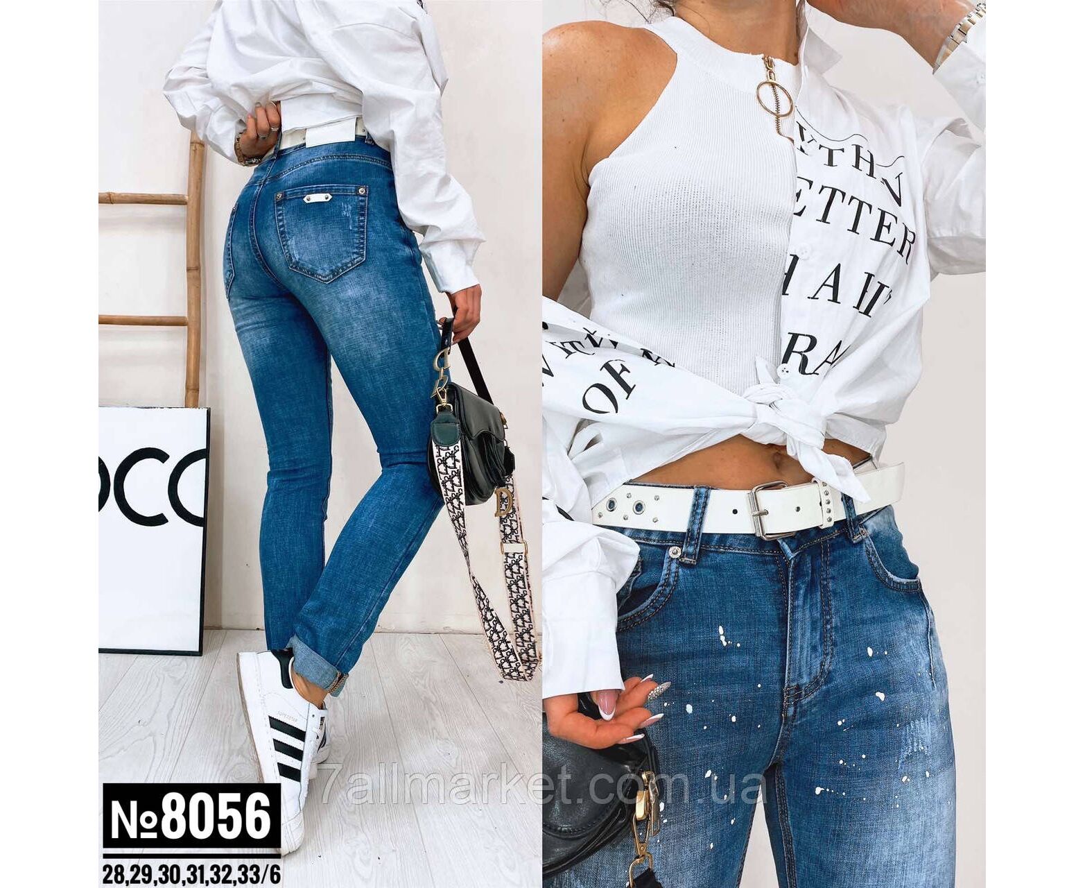 Стильні джинси із синім ременем