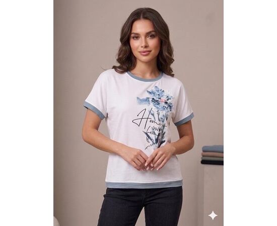 футболка жіноча 25021 white-l.blue р.50-56 "Elena&Vika" недорого оптом від прямого постачальника