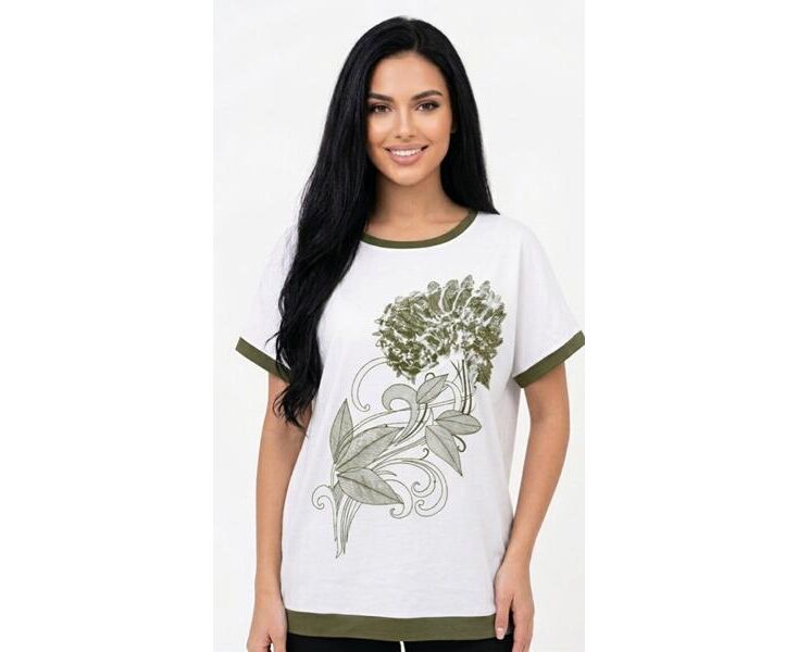 футболка жіноча 25022 white-khaki р.50-56 "PULSE" недорого оптом від прямого постачальника