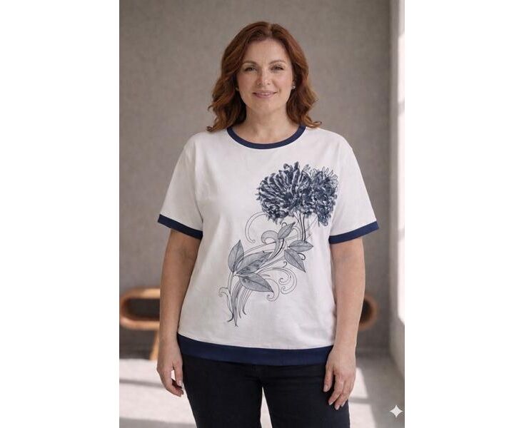 футболка жіноча 25022 white-navy р.50-56 "Elena&Vika" недорого оптом від прямого постачальника