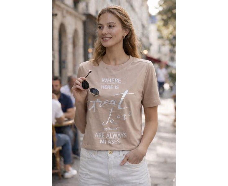 футболка жіноча 25033 beige р.46-50 "Elena&Vika" недорого оптом від прямого постачальника