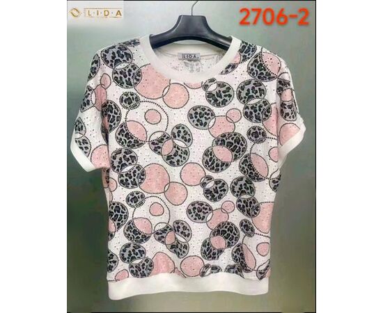 футболка жіноча 2706-2 white-pink р.52-62 "LIDA" недорого оптом від прямого постачальника