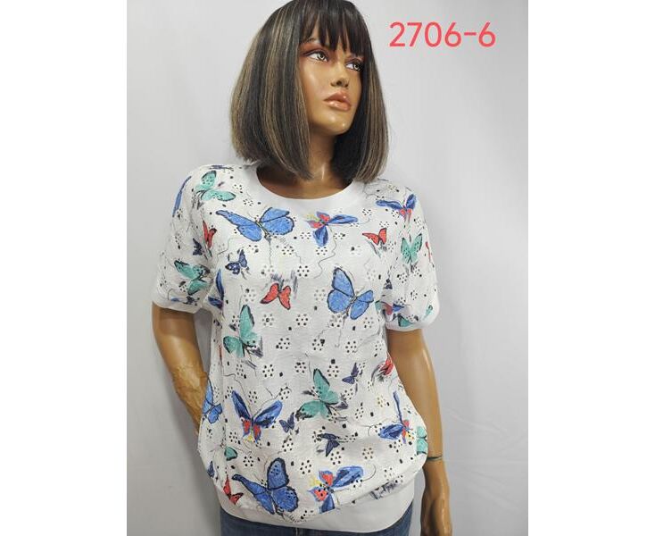 футболка жіноча 2706-6 white-blue р.52-62 "LIDA" недорого оптом від прямого постачальника